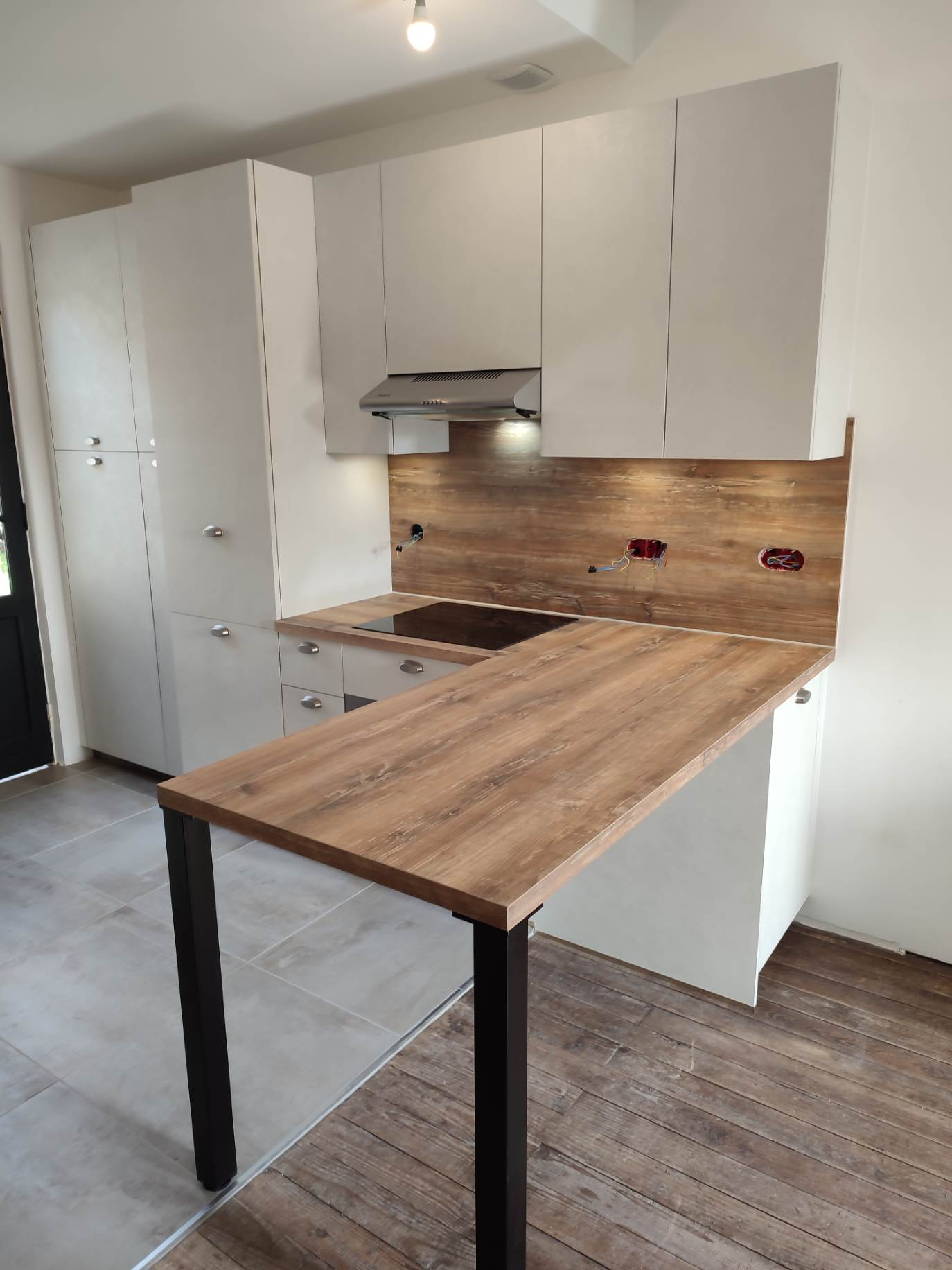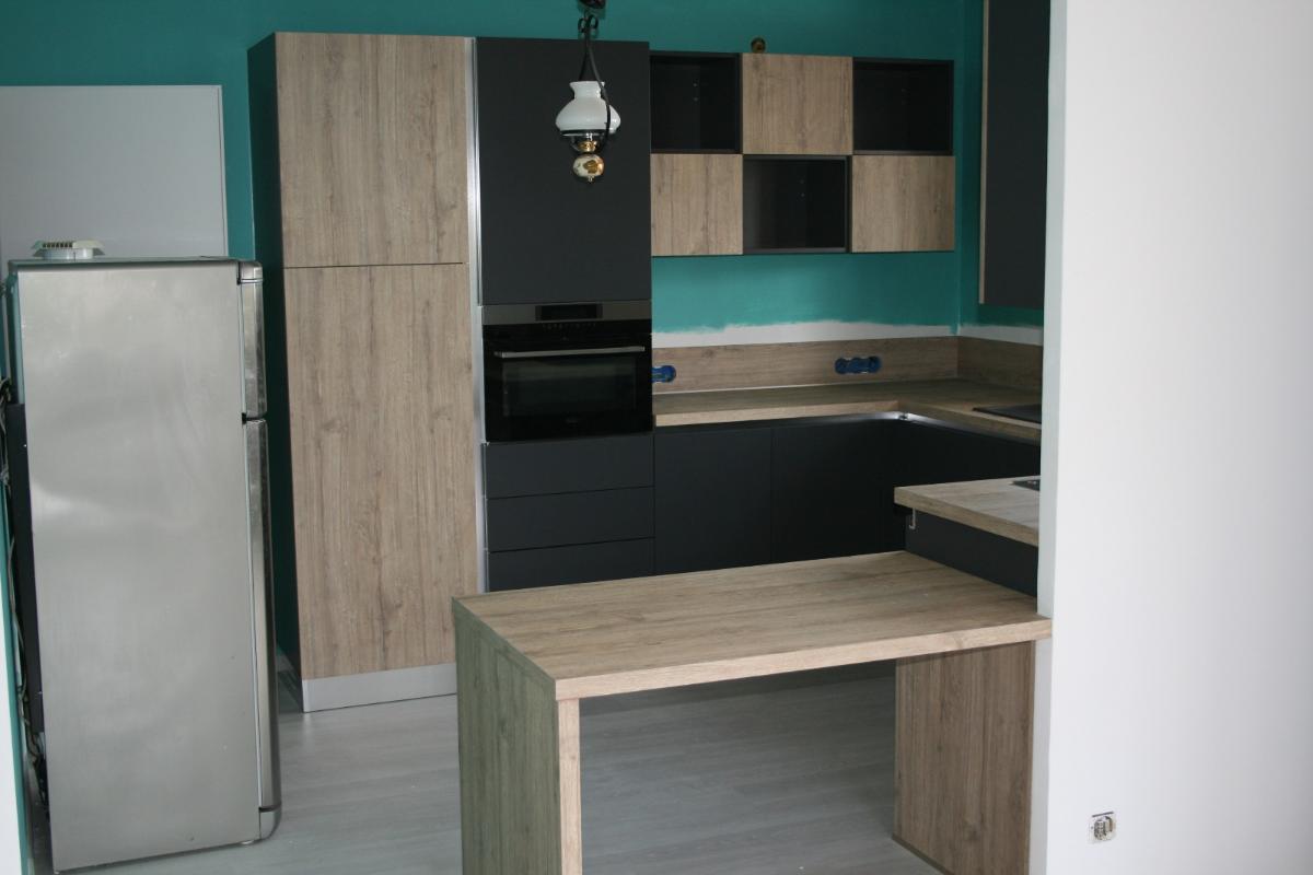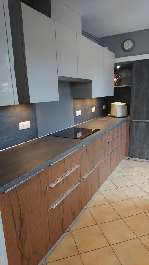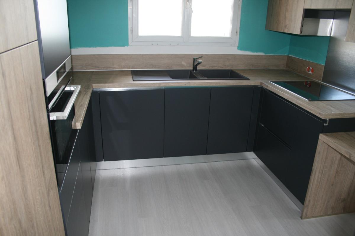 Coloris Blumb Métal avec plans et crédences bois finition Slavonia