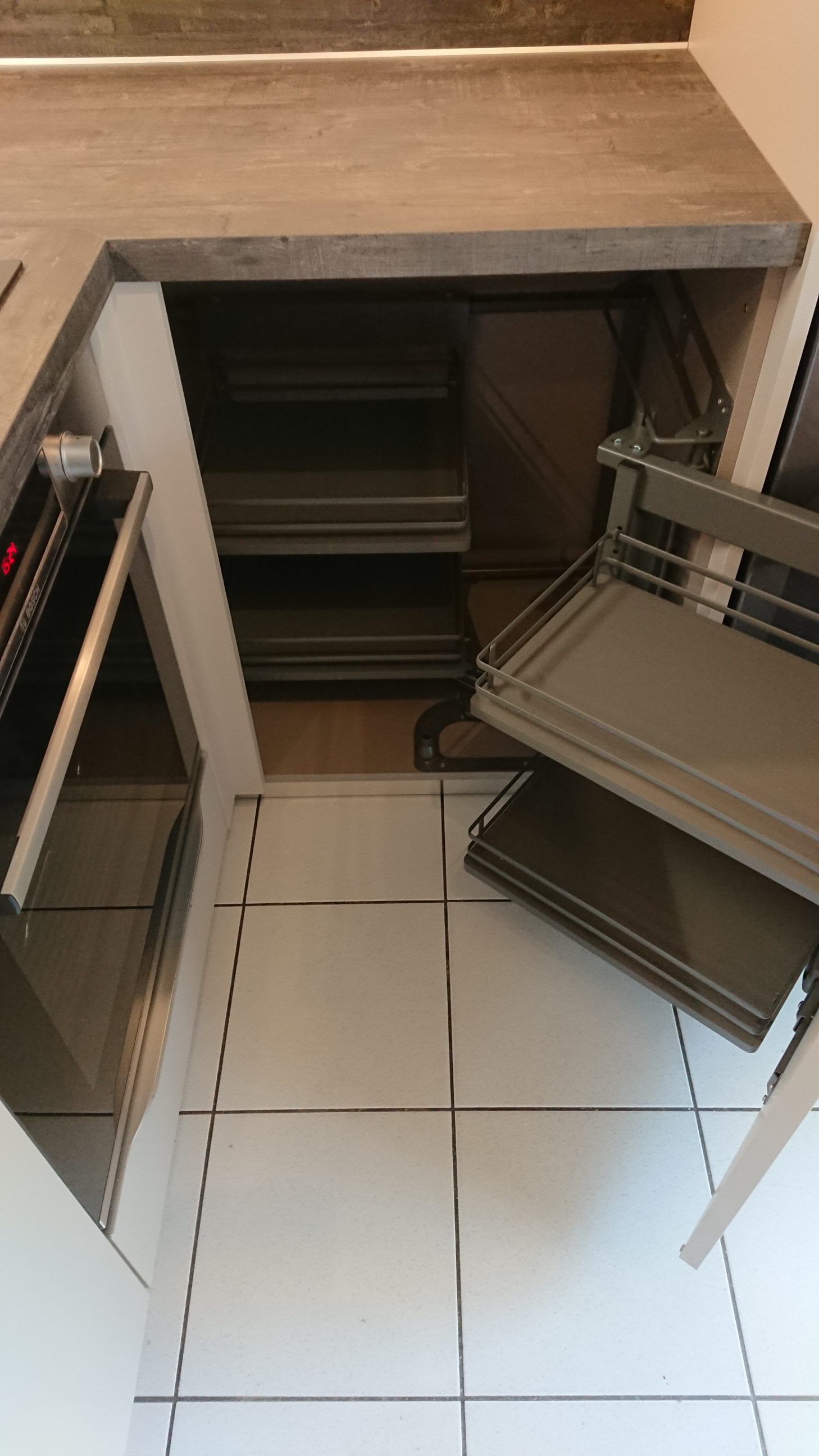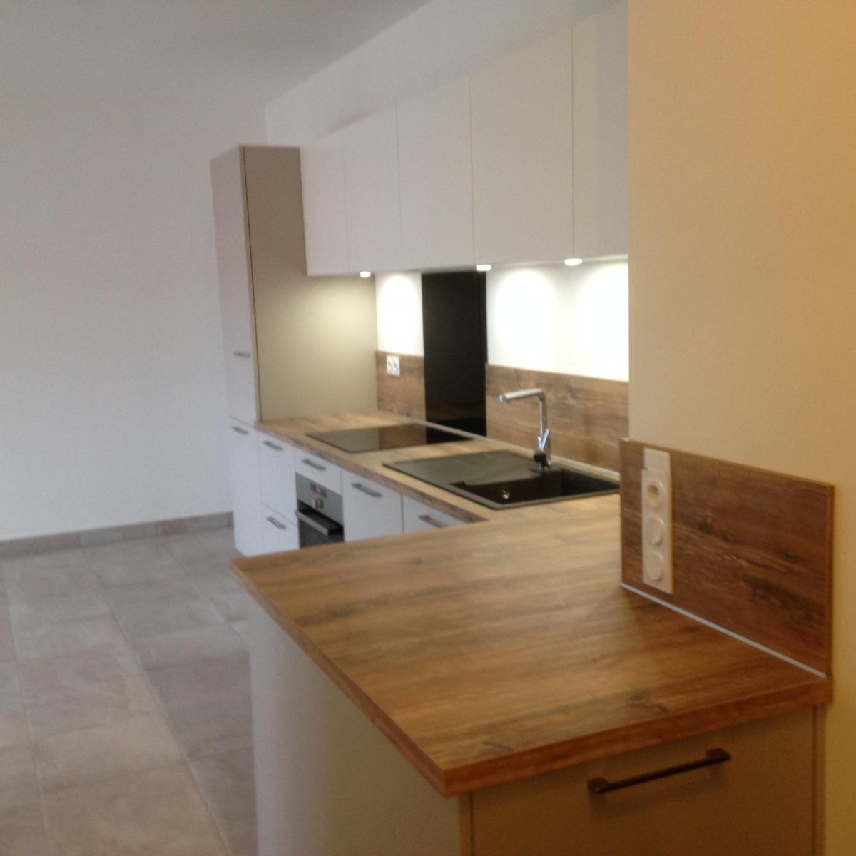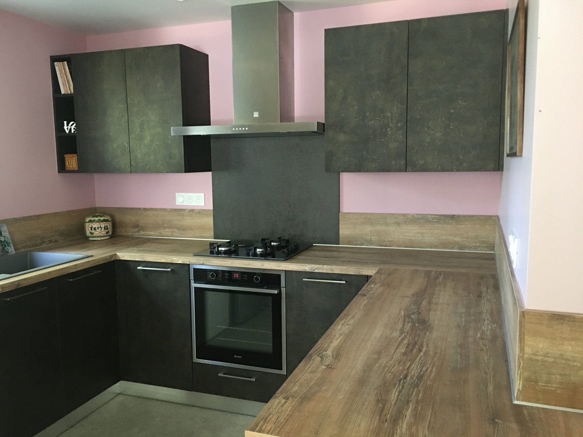 Coloris Blumb Métal avec plans et crédences bois finition Slavonia
