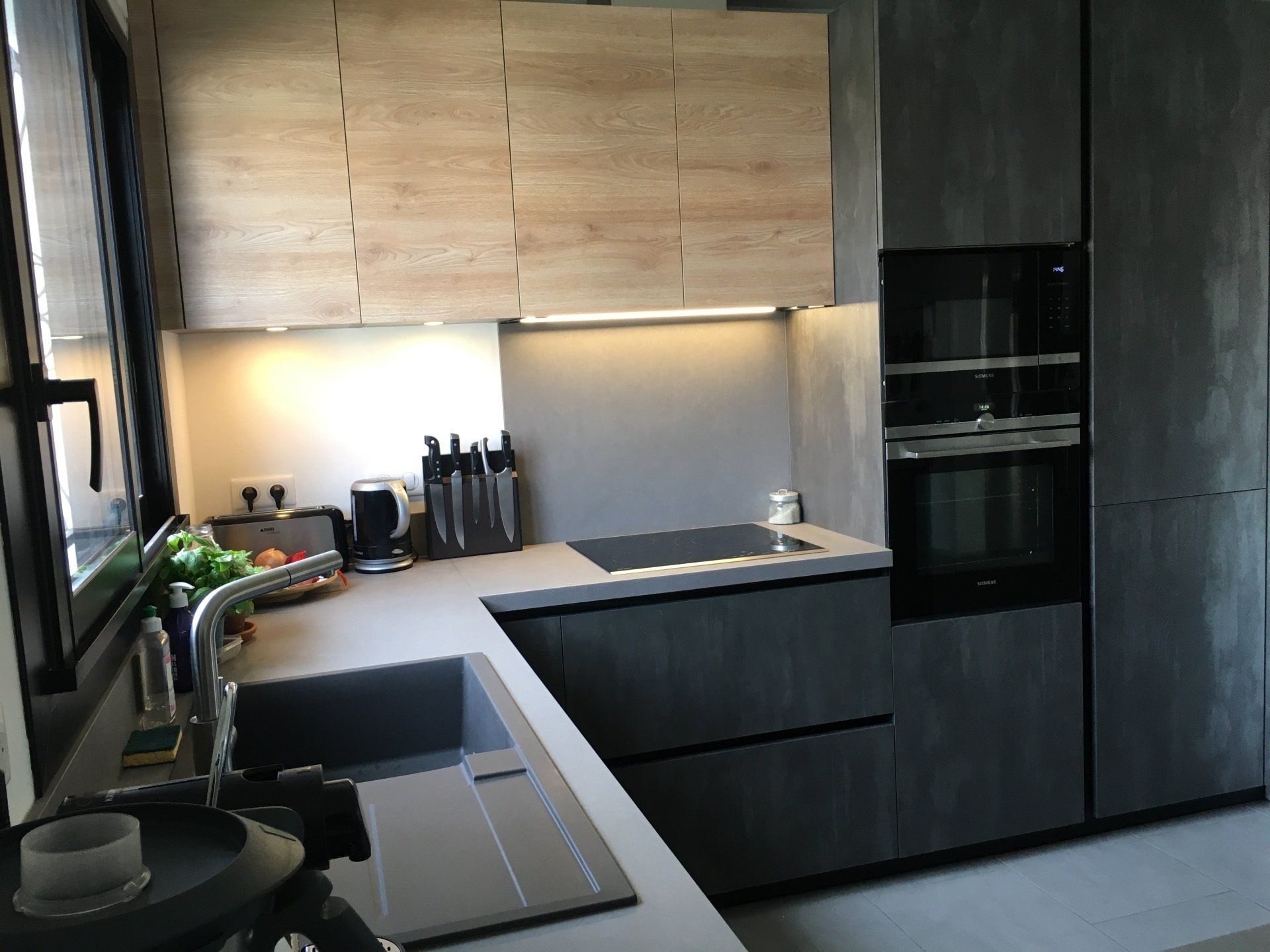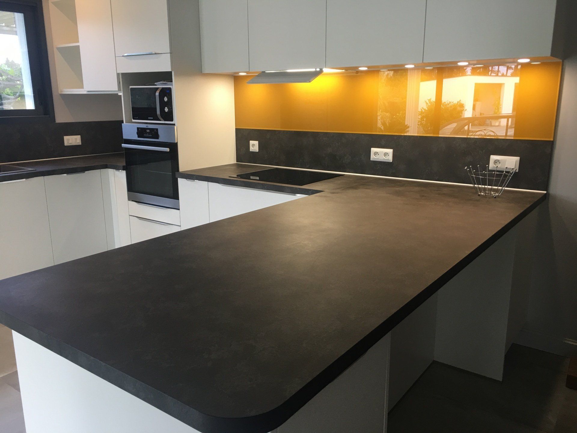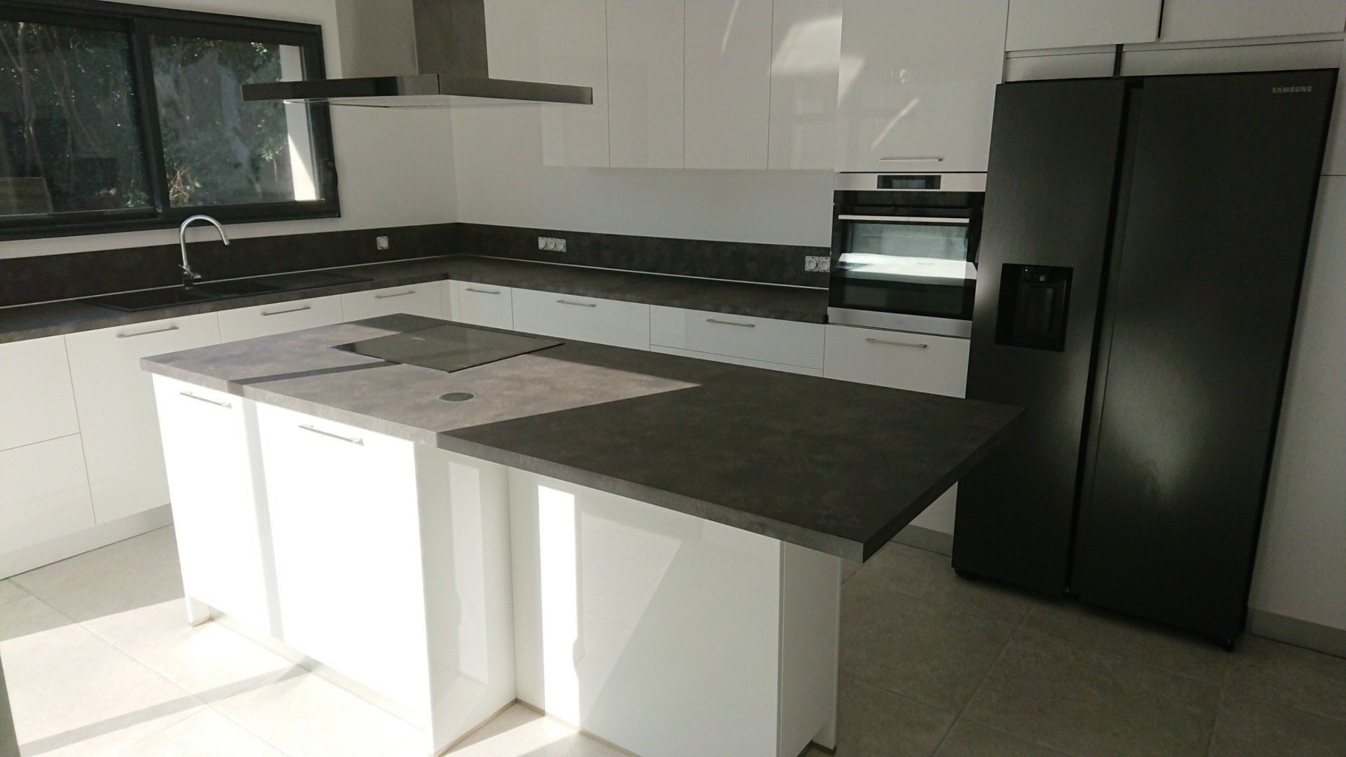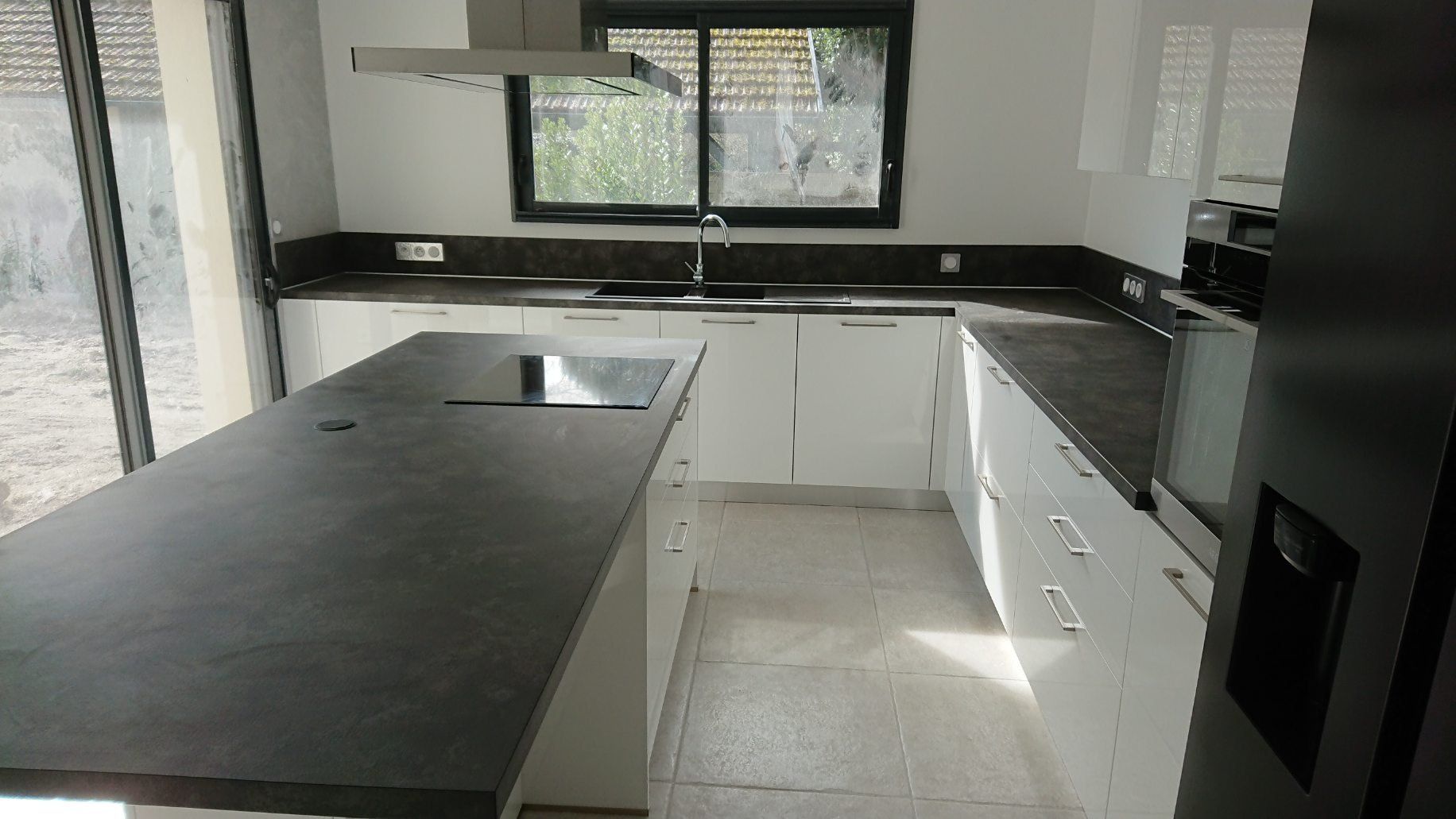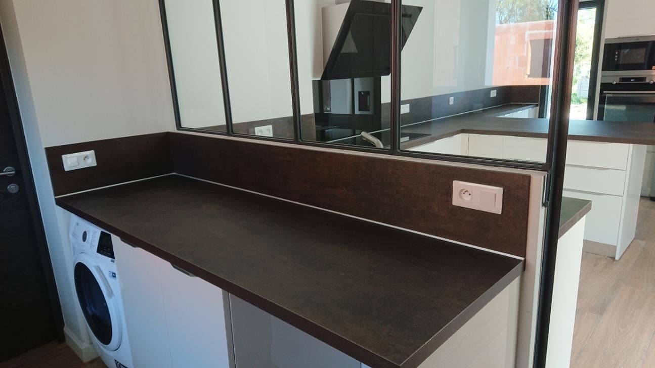 Le plan de travail et la crédence sont en Dekton finition Rem