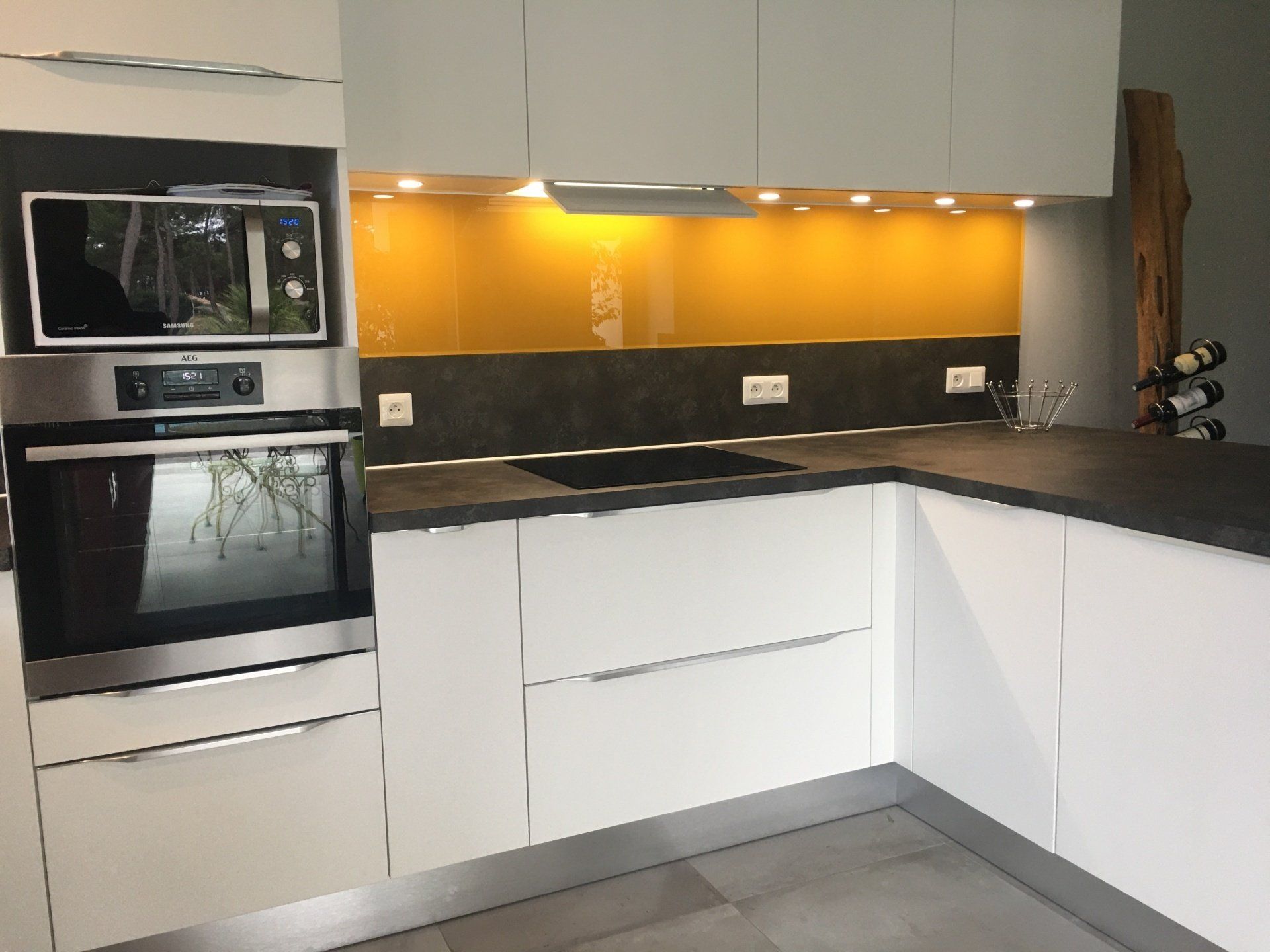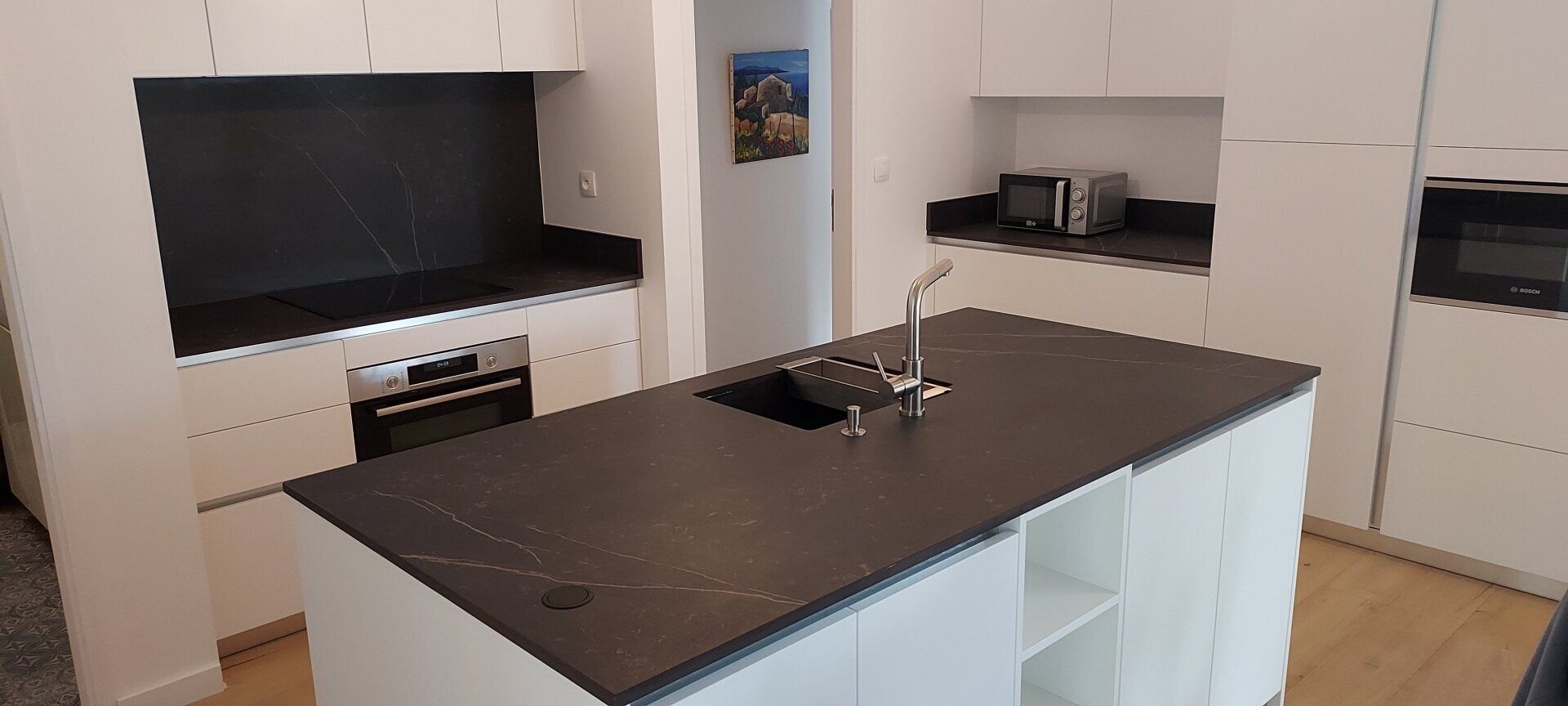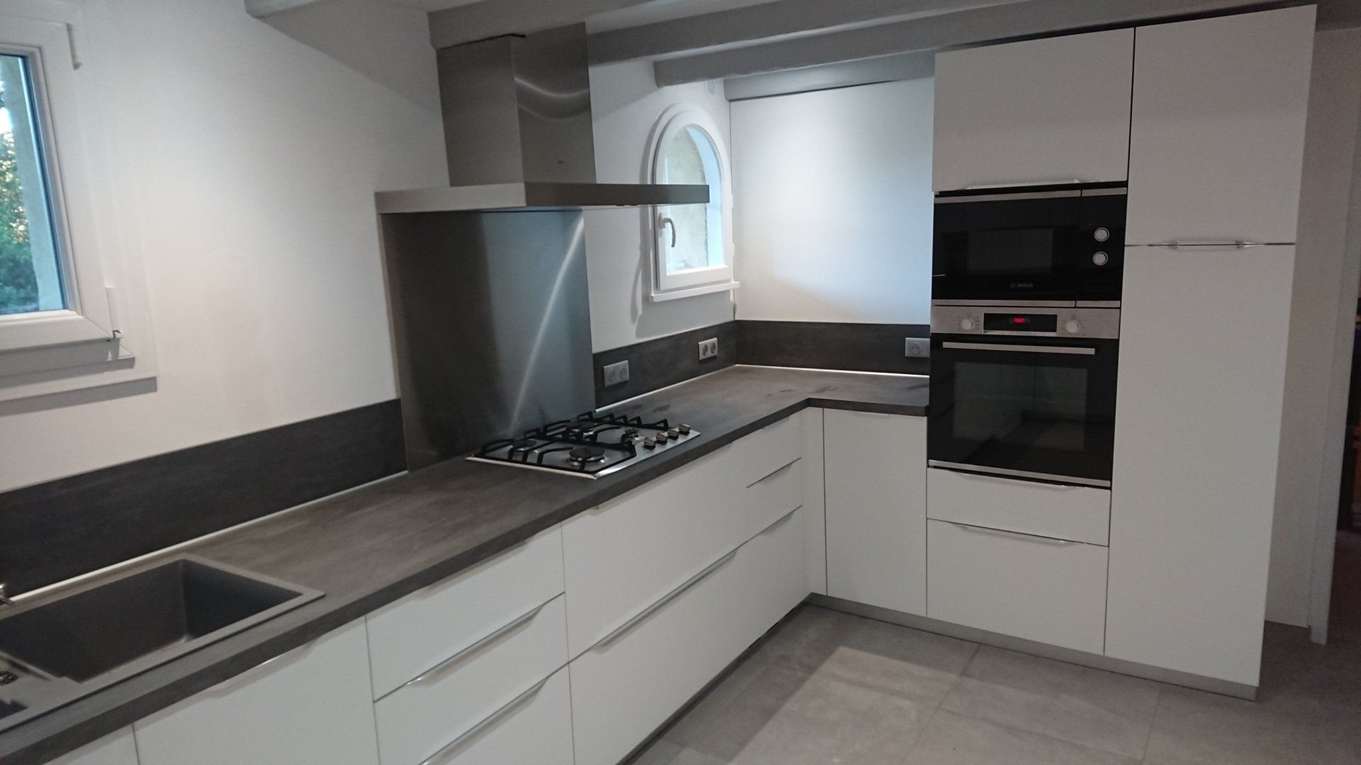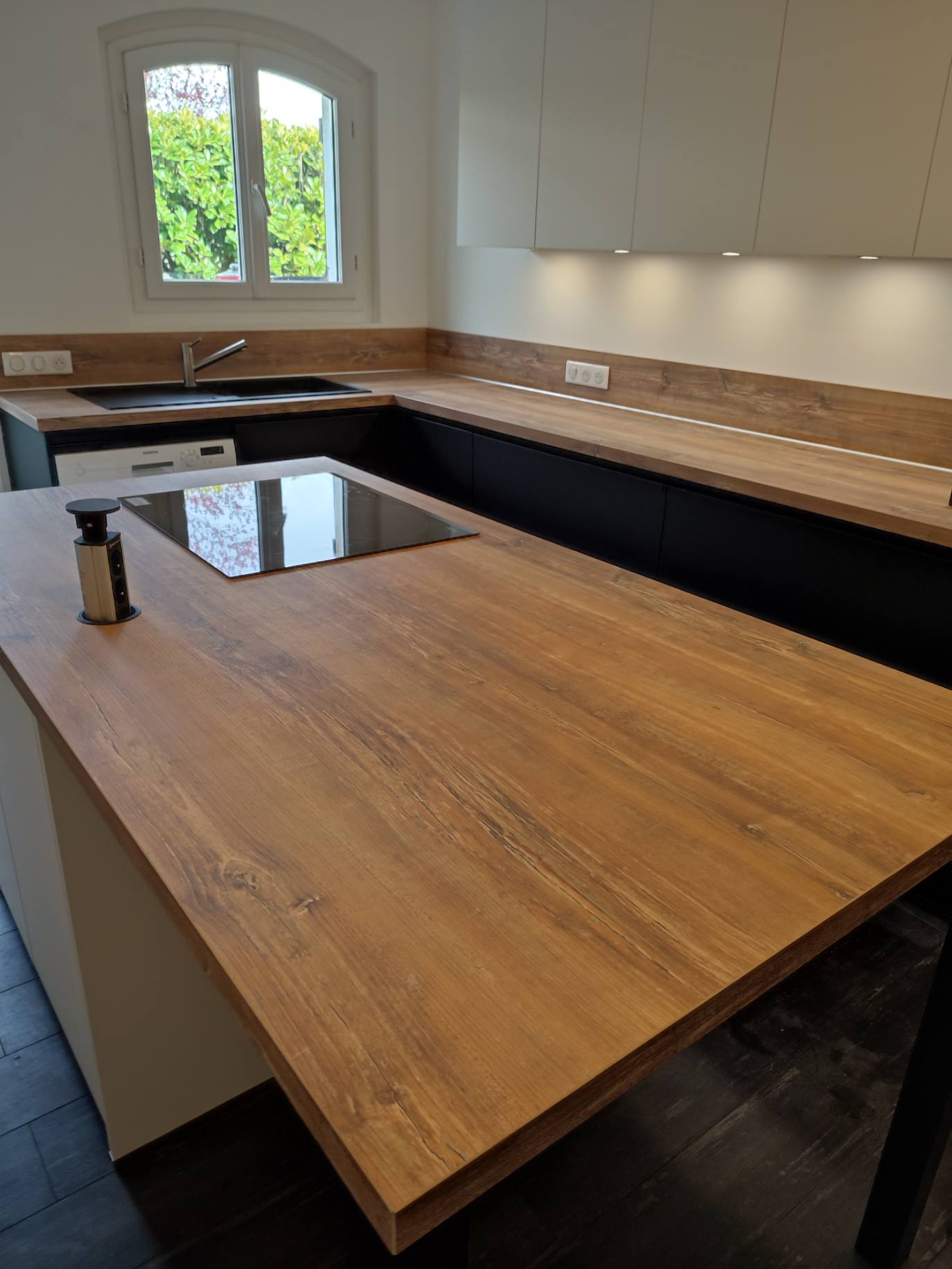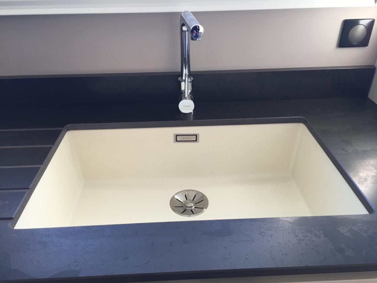 Le plan de travail et la crédence sont en Dekton finition Rem