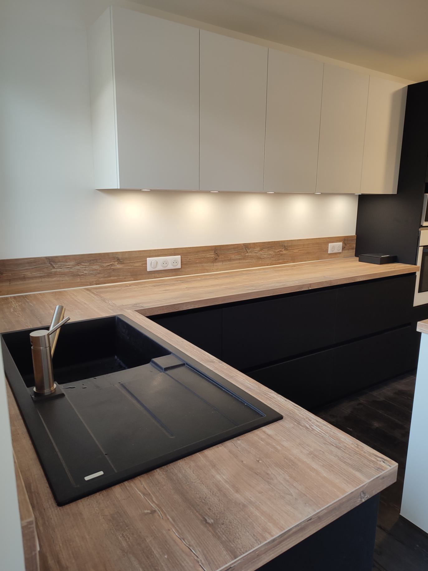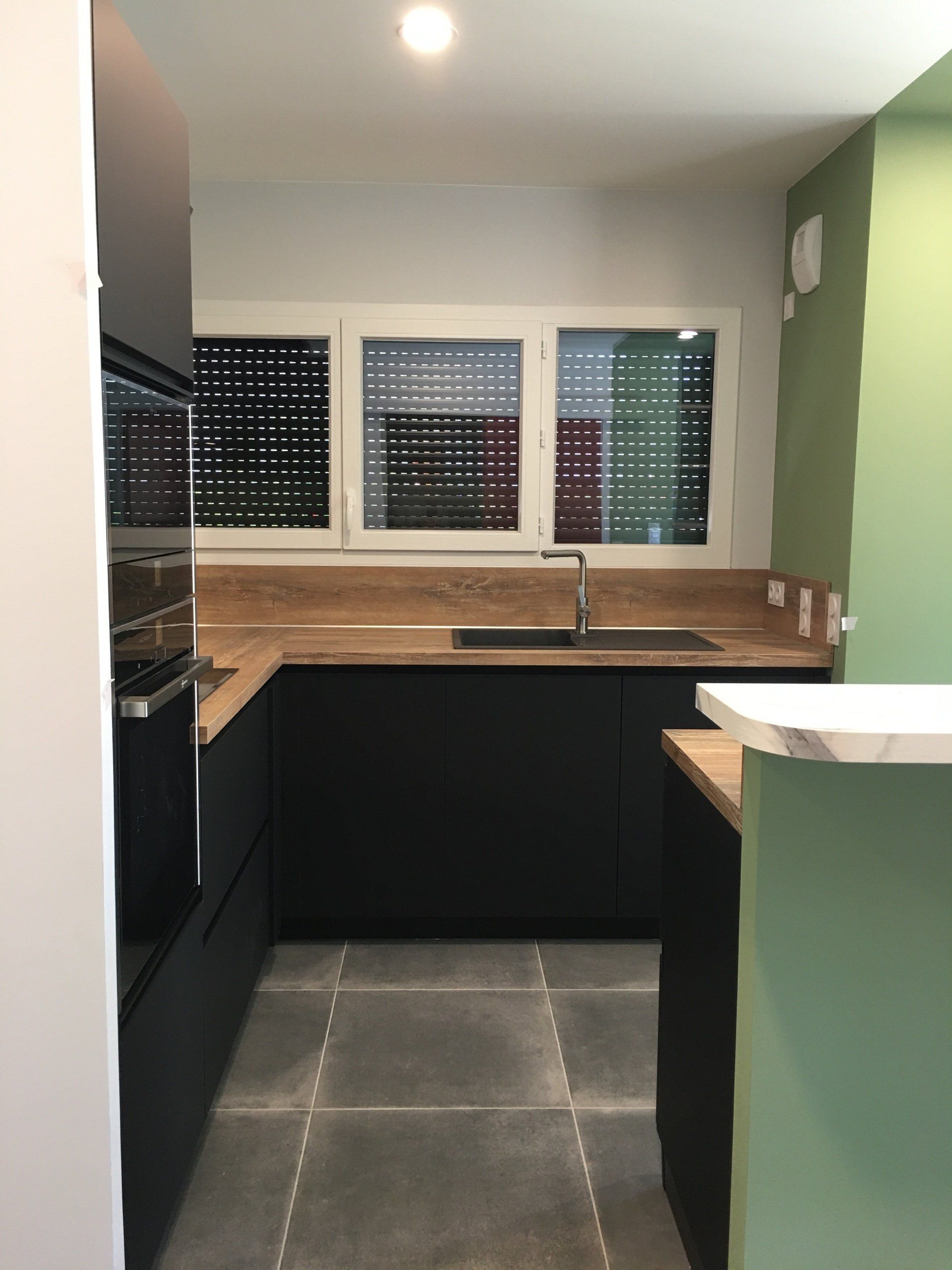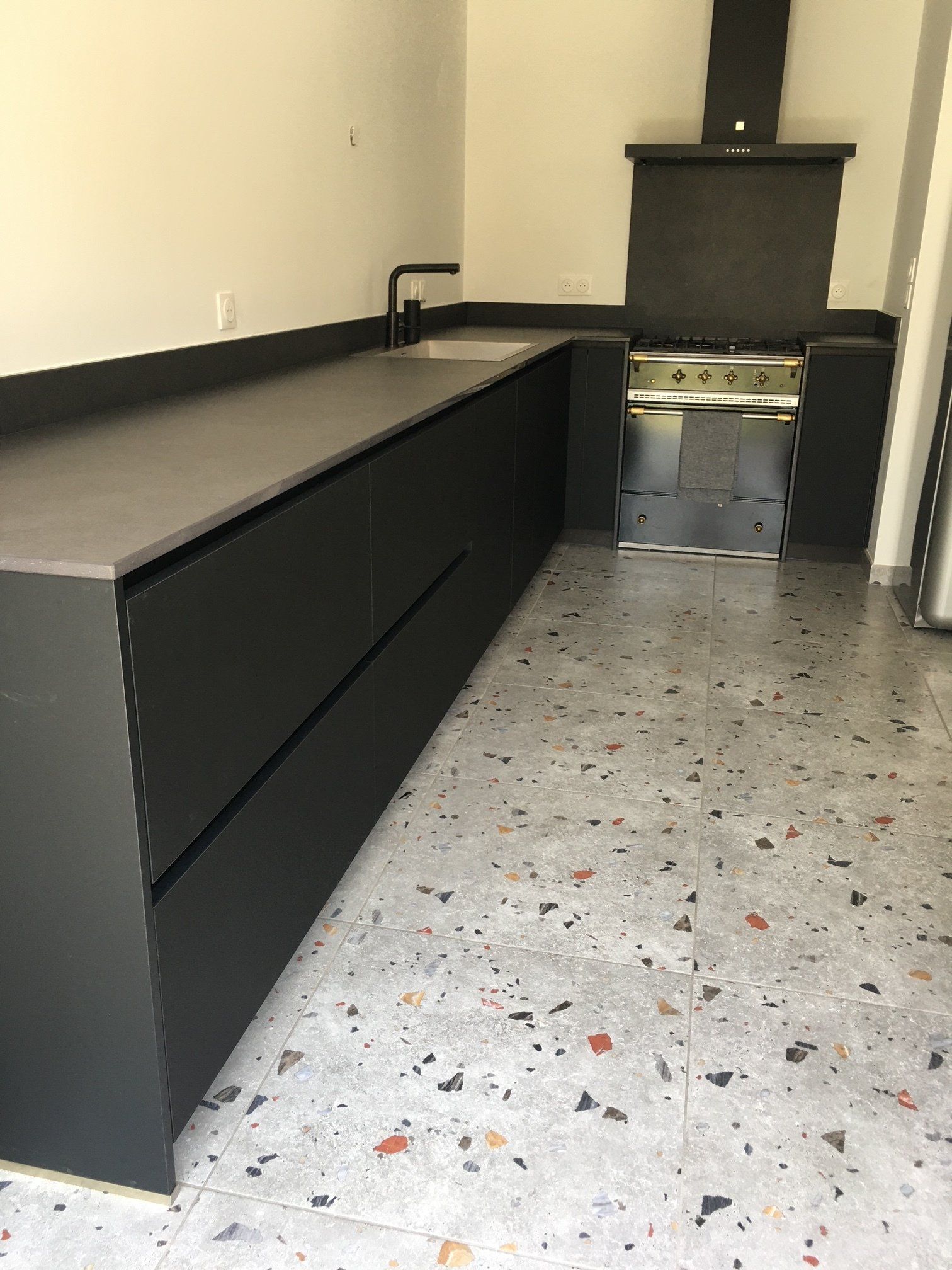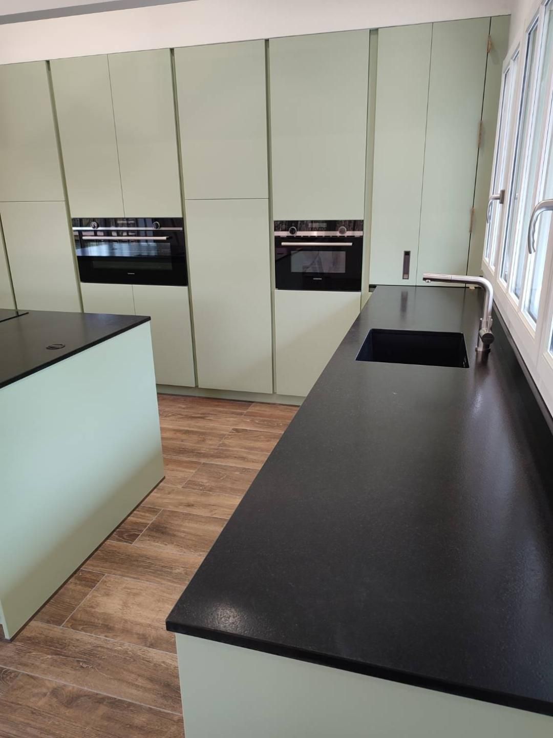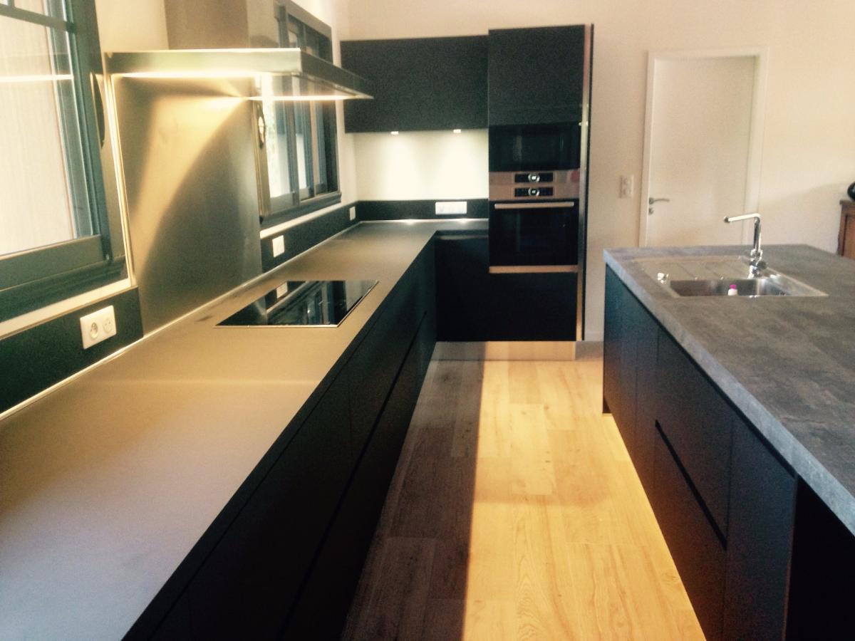 Teinte x black mat avec plan et crédence en Dekton