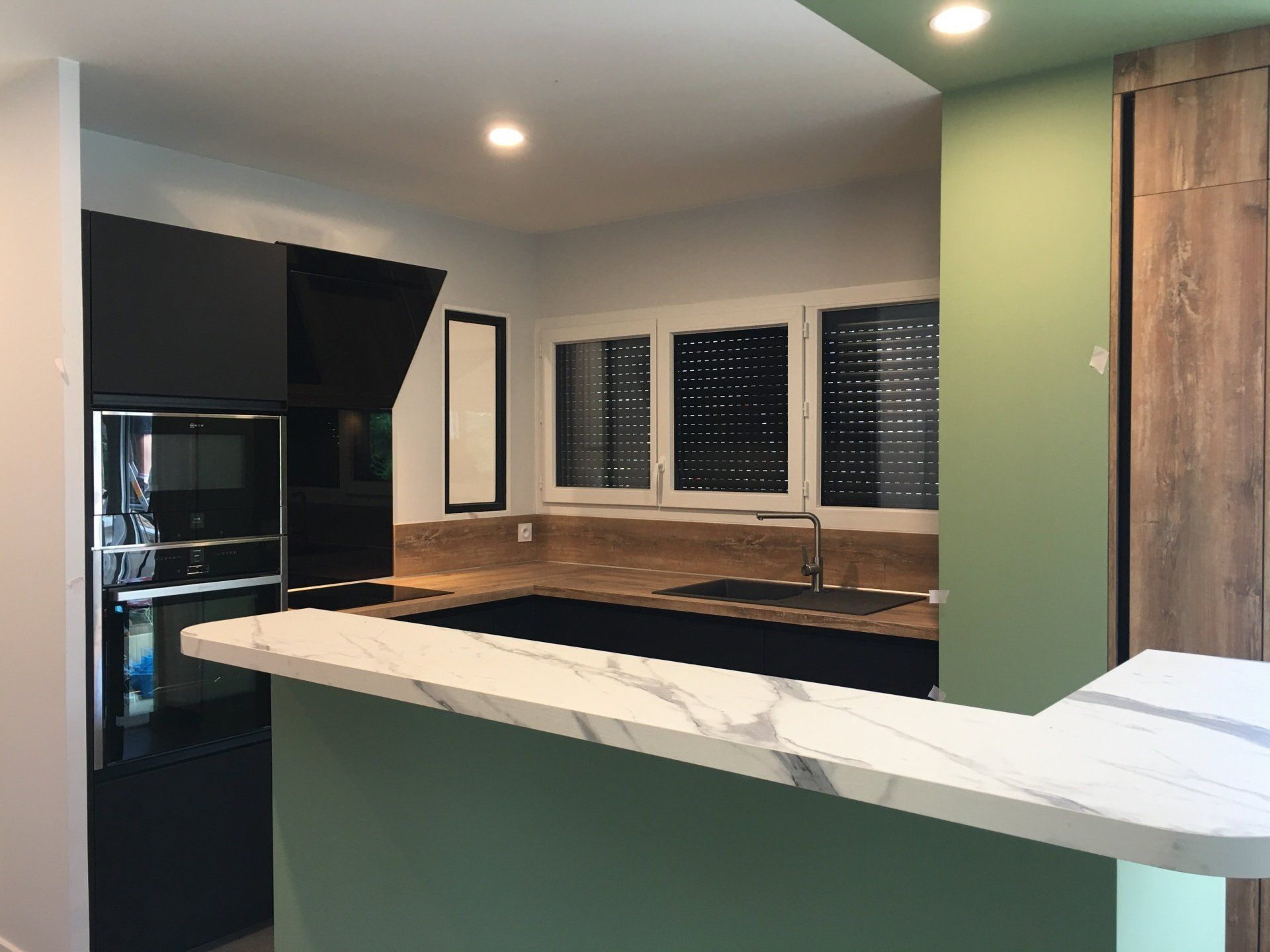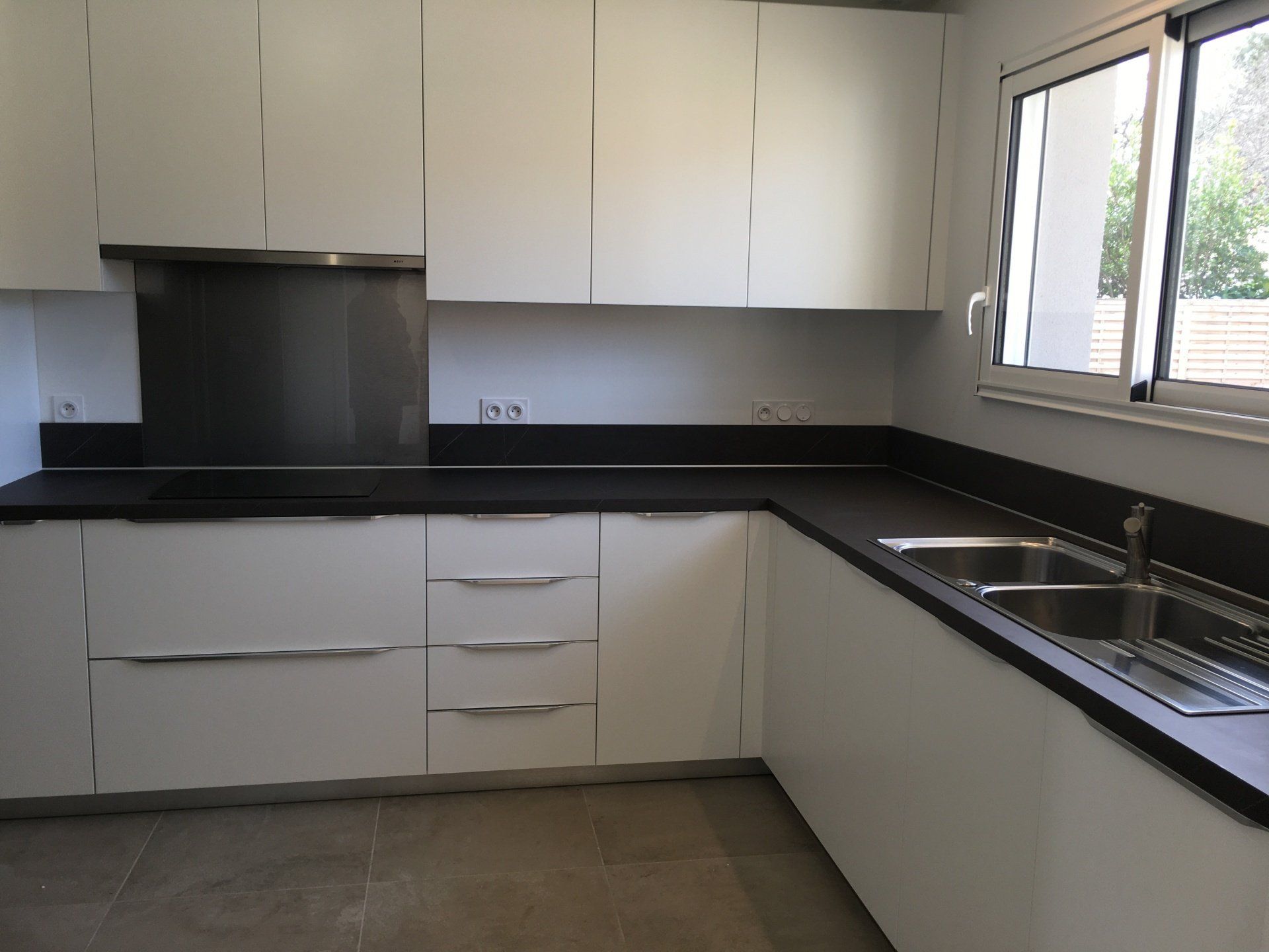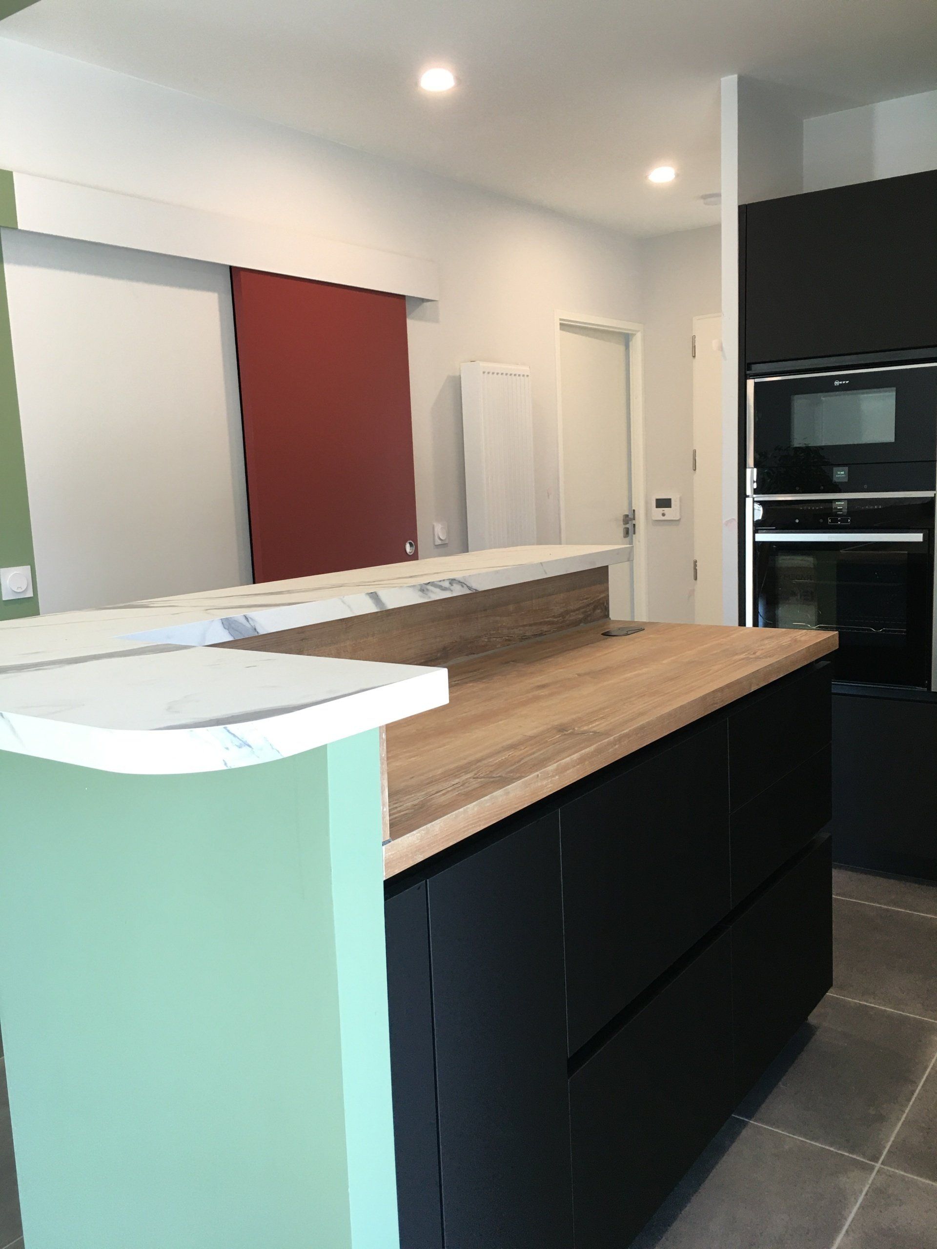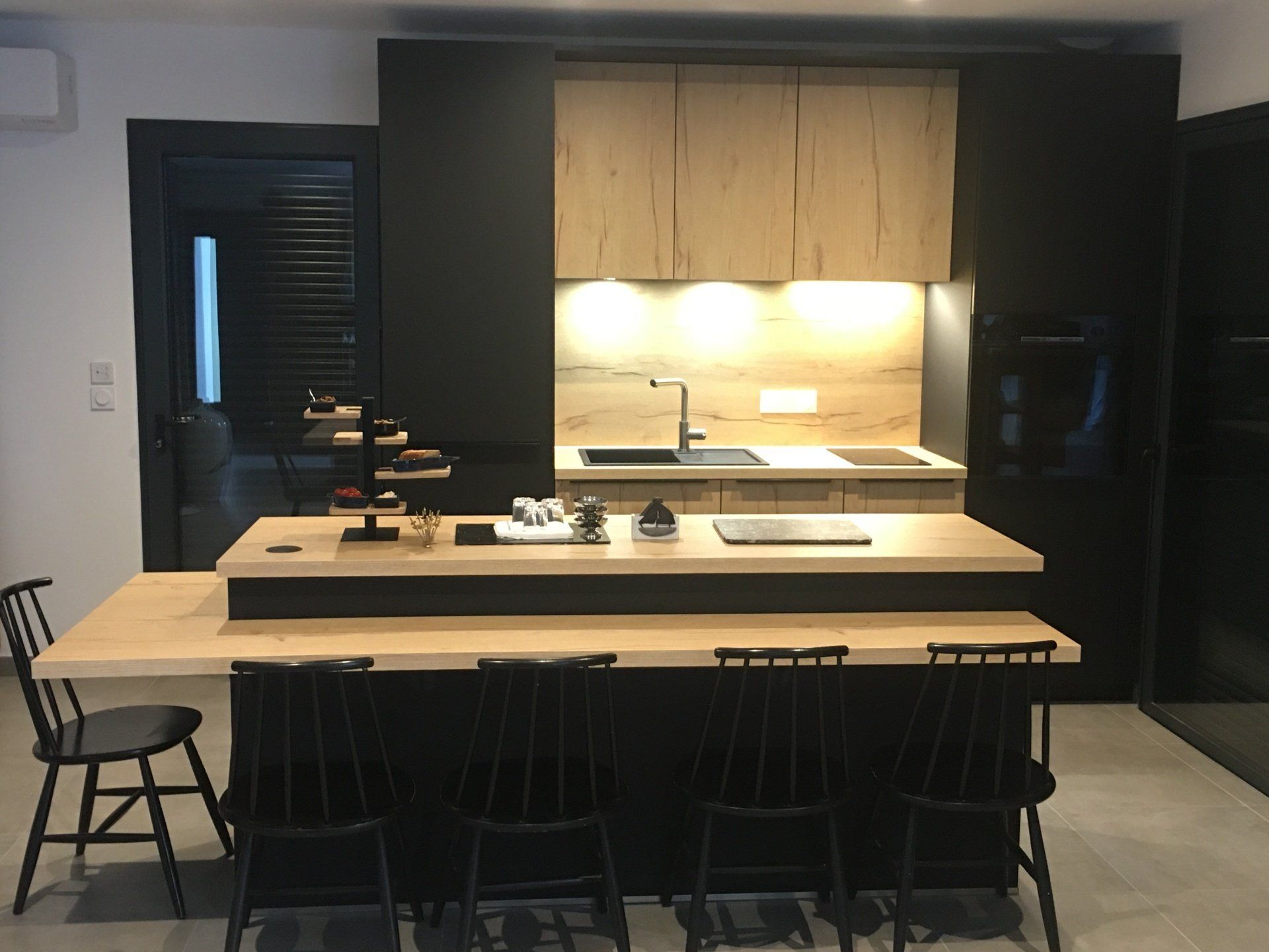Teinte x black mat avec plan et crédence en Dekton