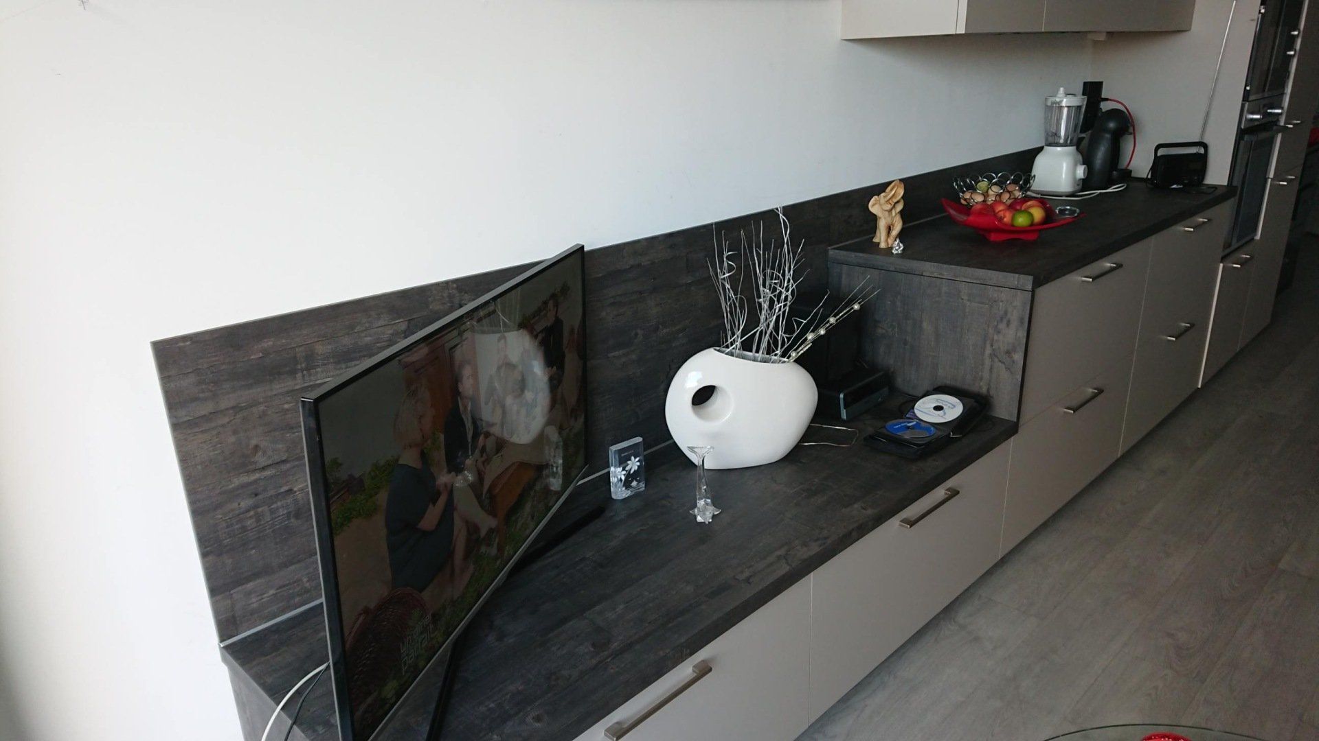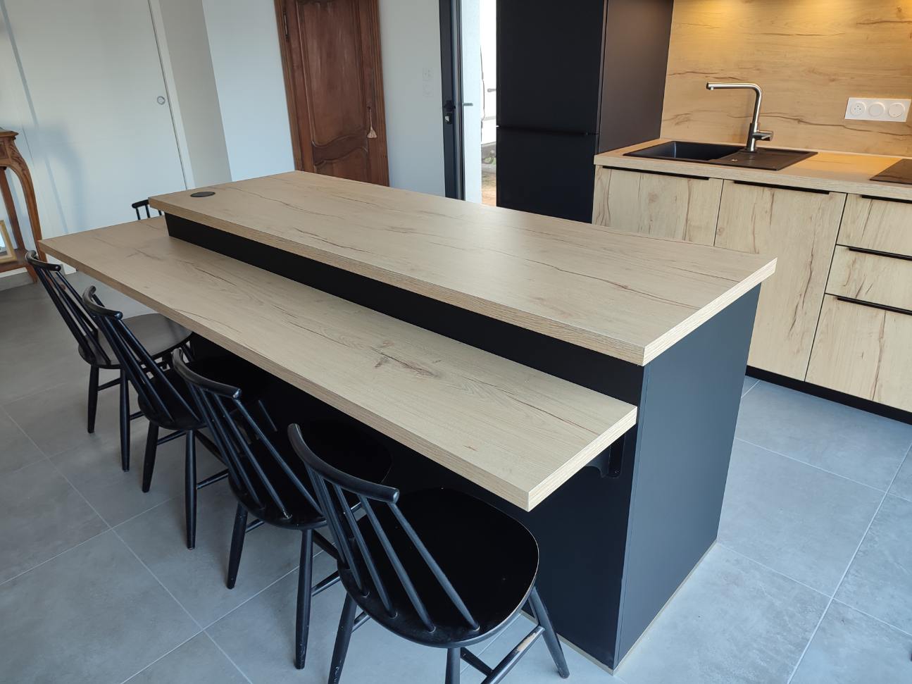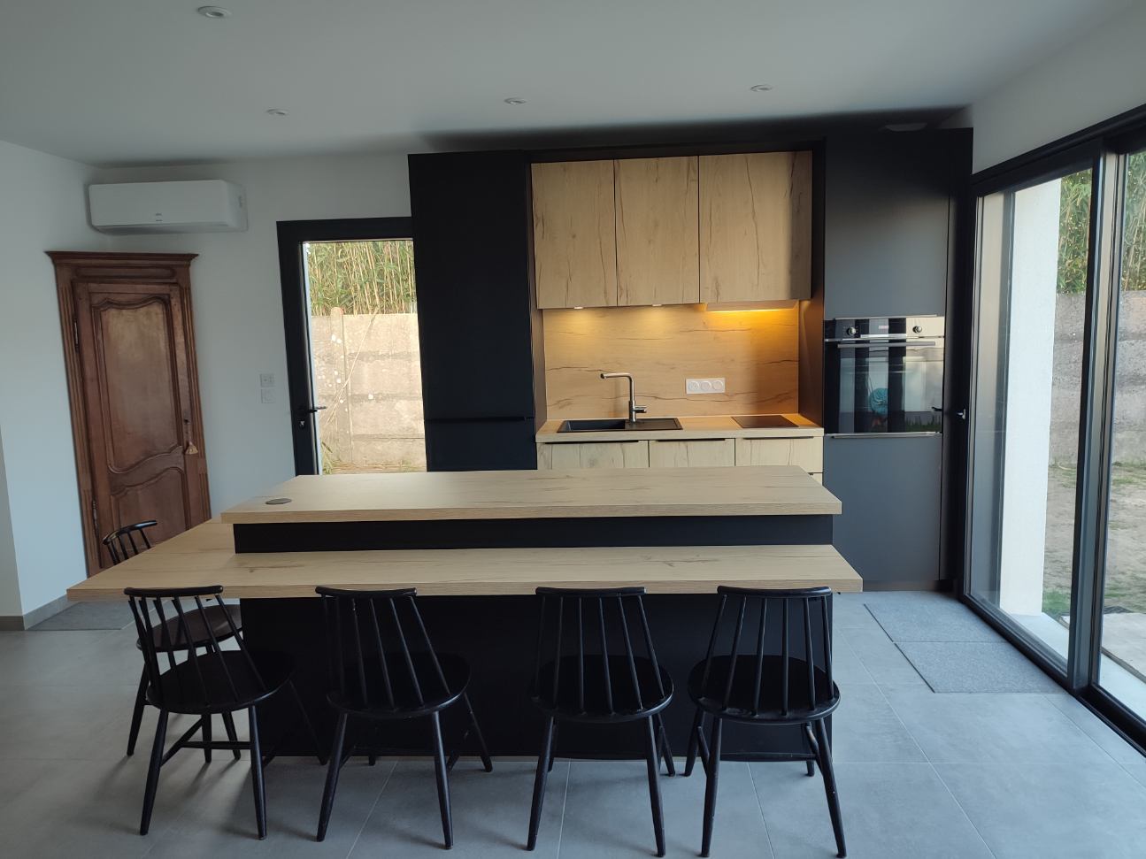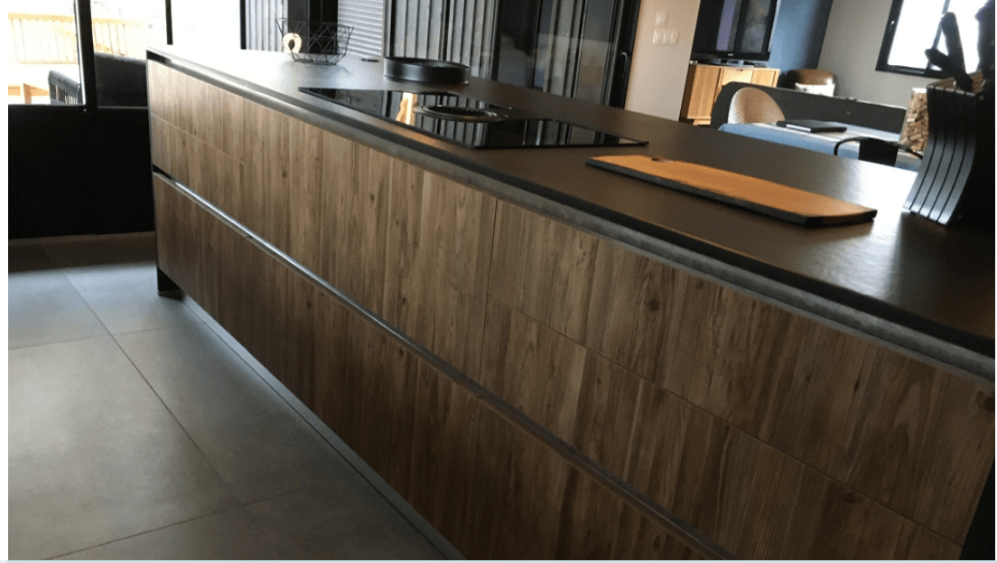 Plan en céramique avec crédences mixtes céramique et bois