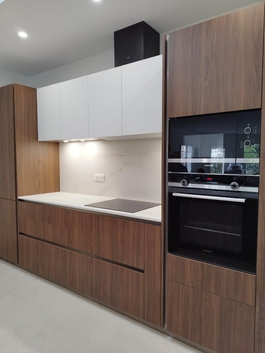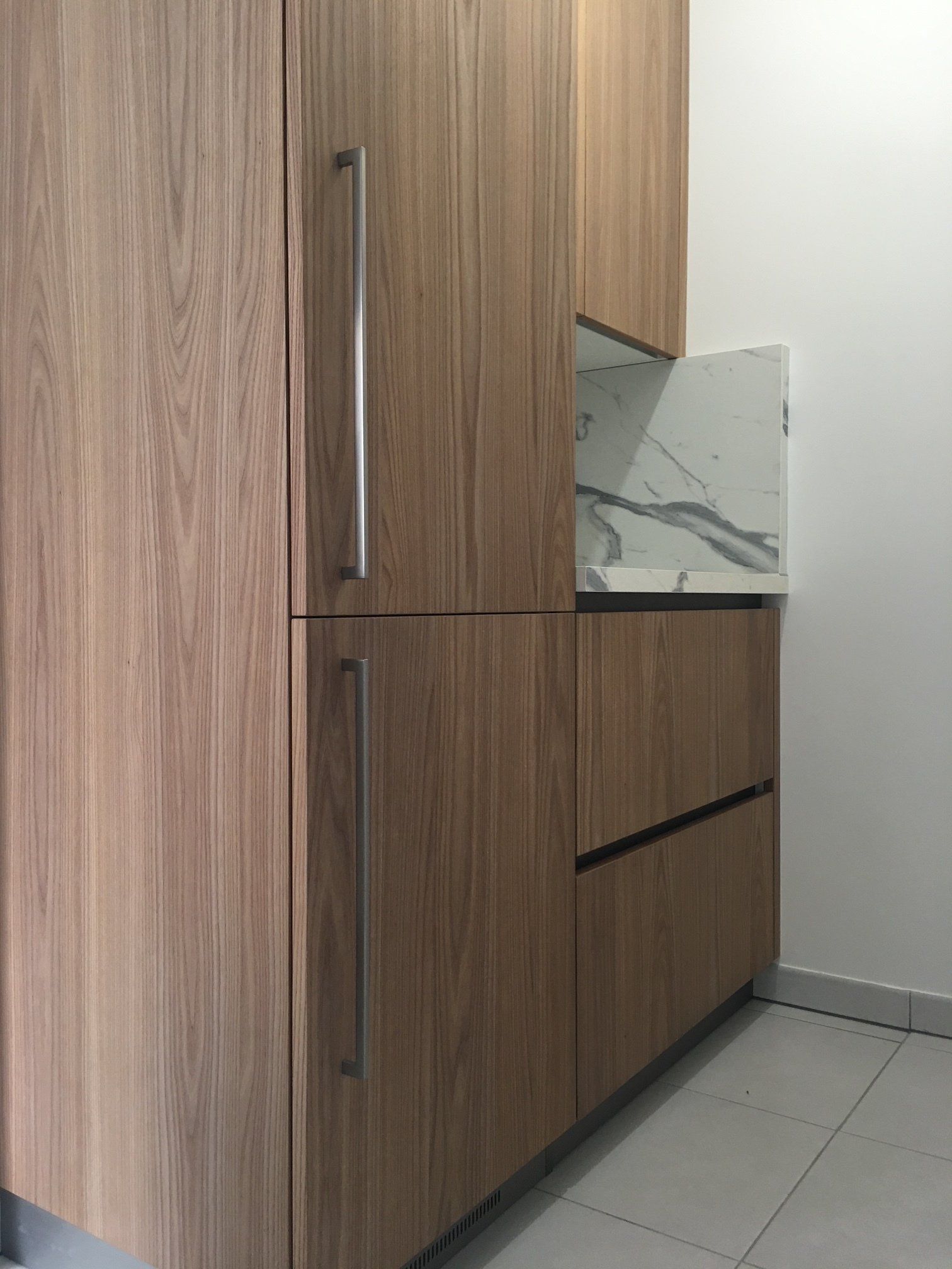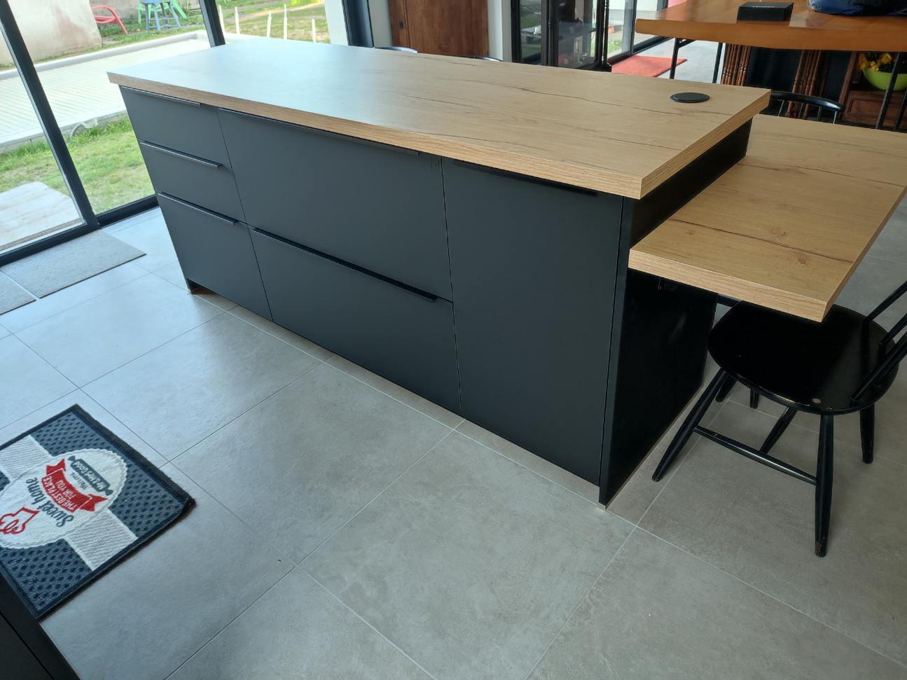 Plan en céramique avec crédences mixtes céramique et bois