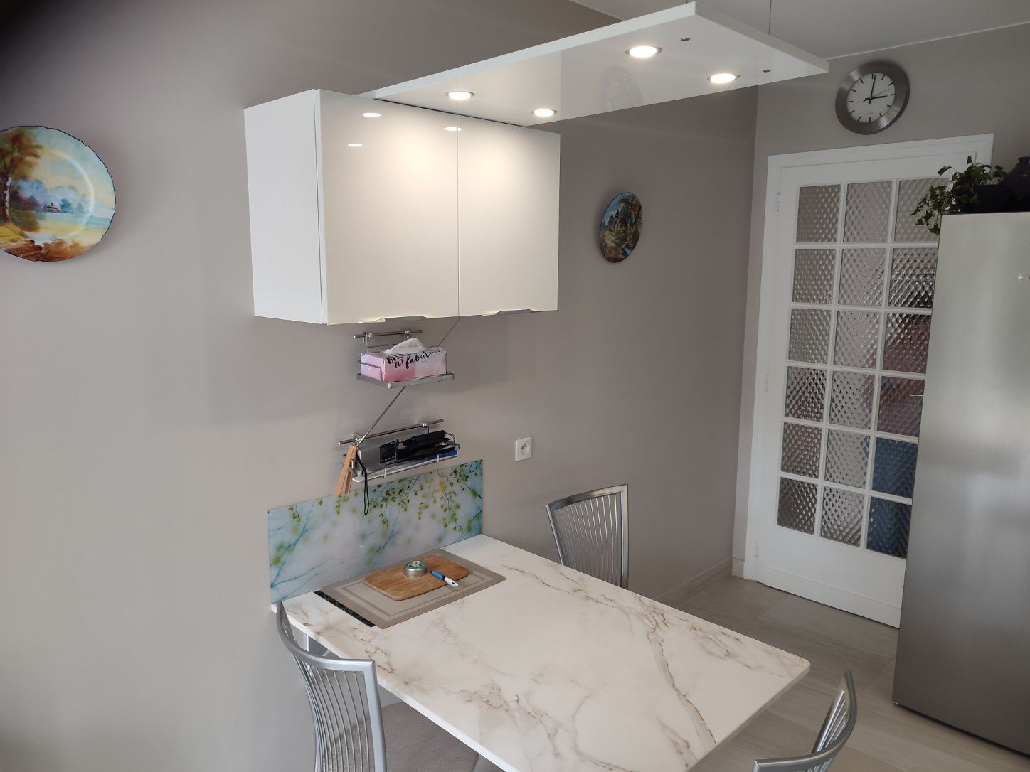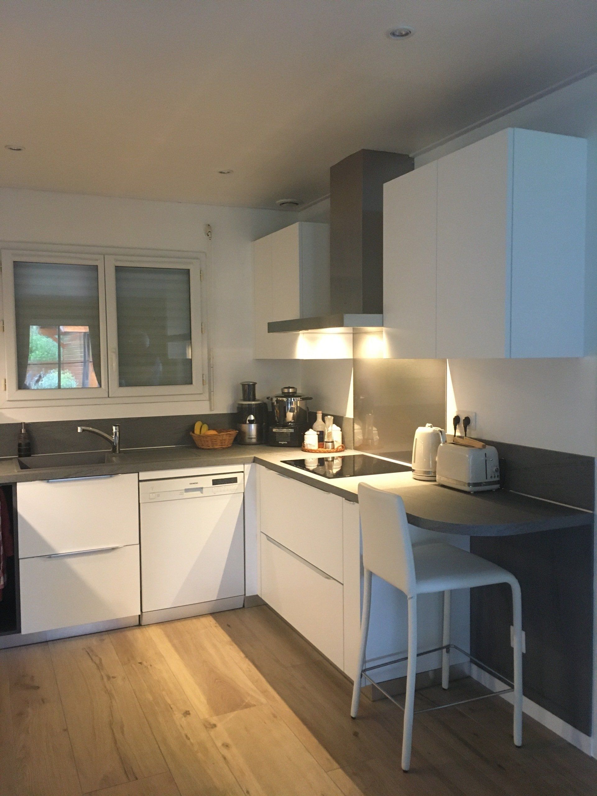 Coloris Blanc Mat avec plan et crédences en stratifié Hpl