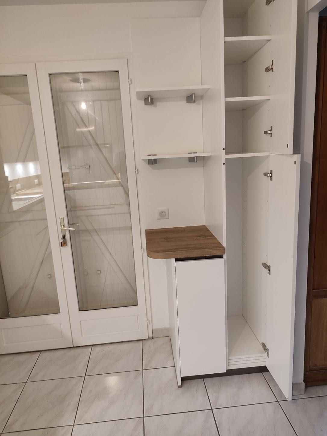 Finition noyer et laque neige mat